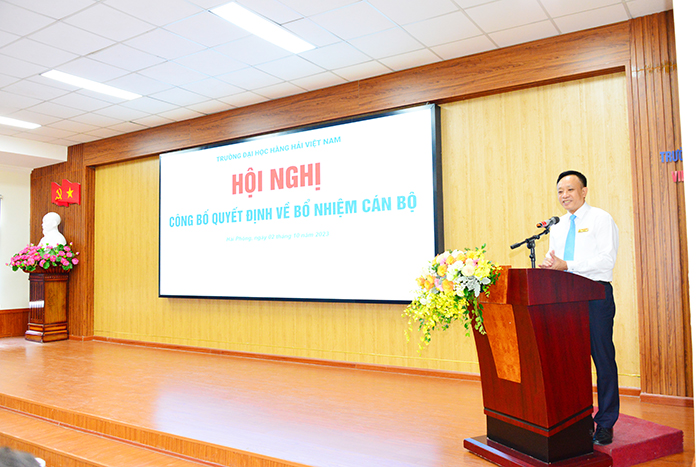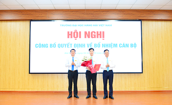 Ngày 02/10/2023, Trường Đại học Hàng hải Việt Nam đã tổ chức Hội nghị công bố quyết định về bổ nhiệm cán bộ các đơn vị thuộc và trực thuộc Trường. Hội nghị do PGS.TS. Phạm Xuân Dương - Hiệu trưởng Nhà trường chủ trì. Tham dự Hội nghị có các đồng chí đại diện Thường trực Đảng uỷ, Thường trực Hội đồng Trường, Ban Giám hiệu, Công đoàn, Đoàn Thanh niên, đại diện các phòng ban chức năng của Nhà trường, cùng các cán bộ, viên chức và người lao động các đơn vị có liên quan.