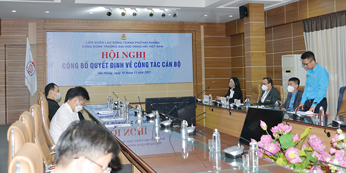 Sáng ngày 10/11/2021, tại Trường Đại học Hàng hải Việt Nam, Liên đoàn Lao động Thành phố công bố Quyết định về công tác cán bộ Công đoàn Trường khóa XXIX, nhiệm kỳ 2017-2022.