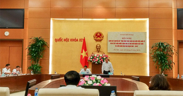 Sáng 22/8, PGS. TS. Phạm Xuân Dương, Hiệu trưởng Nhà trường đã tham dự Hội nghị giám sát chuyên đề “Tình hình thực hiện các điều ước quốc tế đã ký kết giữa Việt Nam và Liên bang Nga giai đoạn 2001-2018” được tổ chức tại Nhà Quốc hội, dưới sự chủ trì của Ủy viên Trung ương Đảng, Chủ nhiệm Ủy ban Đối ngoại Nguyễn Văn Giàu.