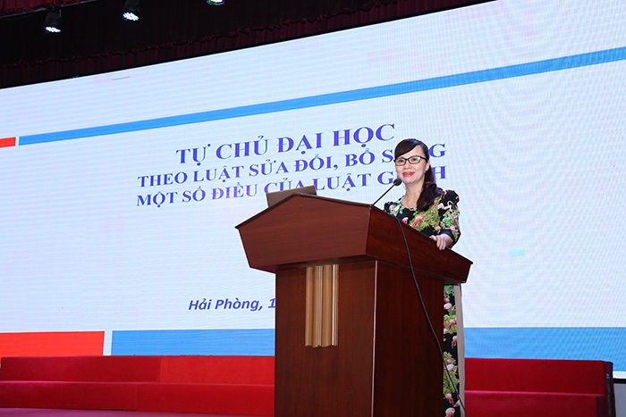 TS. Nguyễn Thị Kim Phụng - Vụ trưởng Vụ Giáo dục đại học đã quán triệt các nội dung của Luật.