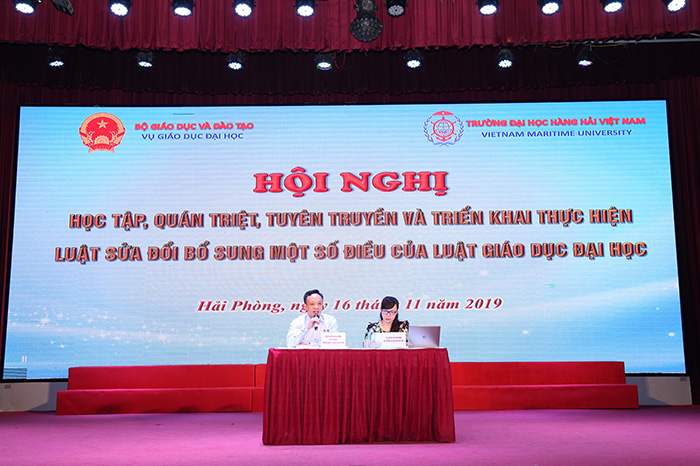 Ngày 16/11/2019, Hội nghị Học tập, quán triệt, tuyên truyền và triển khai thực hiện Luật sửa đổi bổ sung một số điều của Luật Giáo dục đại học (sau đây gọi tắt là Luật) đã được Trường Đại học Hàng hải Việt Nam tổ chức để phổ biến và quán triệt các nội dung đổi mới của Luật đến toàn thể cán bộ, giảng viên, chuyên viên.