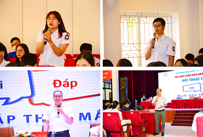Phần đối thoại trực tiếp giữa lãnh đạo Nhà trường với sinh viên tại Hội nghị đã diễn ra trong không khí hết sức chân thành, cởi mở, thẳng thắn, xây dựng. Xen lẫn những câu trả lời xác đáng từ phía Nhà trường là những tràng pháo tay thể hiện sự hài lòng, thỏa mãn từ phía các em sinh viên.