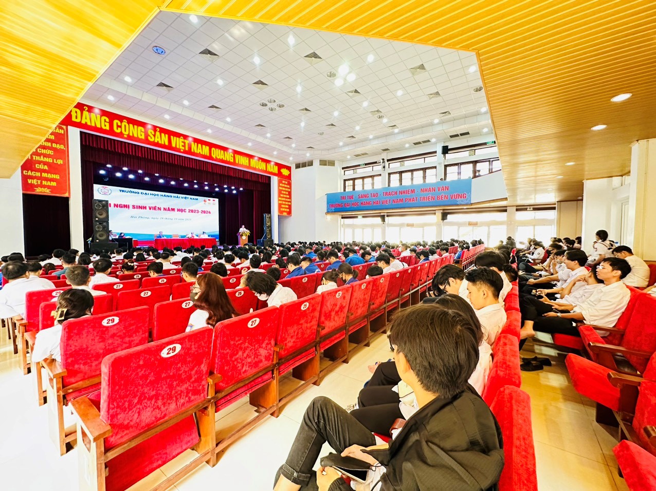Sáng 28/10, Trường ĐHHHVN đã tổ chức Hội nghị Sinh viên năm học 2023-2024, PGS.TS. Phạm Xuân Dương - Hiệu trưởng Nhà trường đã chủ trì Hội nghị. Tham dự Hội nghị có các đồng chí trong Ban Giám hiệu, lãnh đạo các đơn vị: các Khoa/Viện, Phòng/Ban, Đoàn TN, Hội SV; và khoảng 600 sinh viên là Nhóm trưởng,Bí thư Chi đoàn và đại diện sinh viên của các đơn vị.