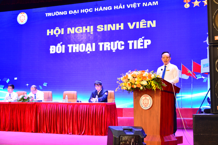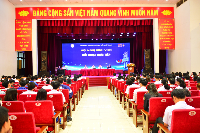 Sáng 02/11/2024, Trường Đại học Hàng hải Việt Nam đã tổ chức Hội nghị Sinh viên năm học 2024-2025 dưới sự chủ trì của PGS.TS. Phạm Xuân Dương - Hiệu trưởng Nhà trường. Đây cũng là kênh thông tin quan trọngcủa Nhà trường nhằm trực tiếp lắng nghe các ý kiến phản hồi của sinh viên, trao đổi, giải đáp những thắc mắc, kiến nghị từ sinh viên Nhà trường.