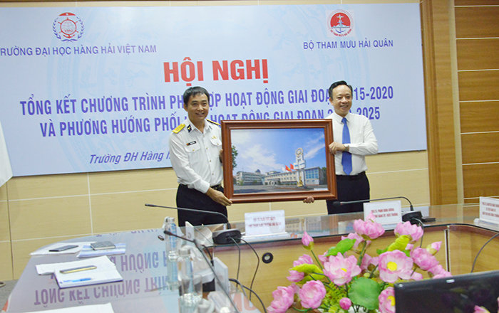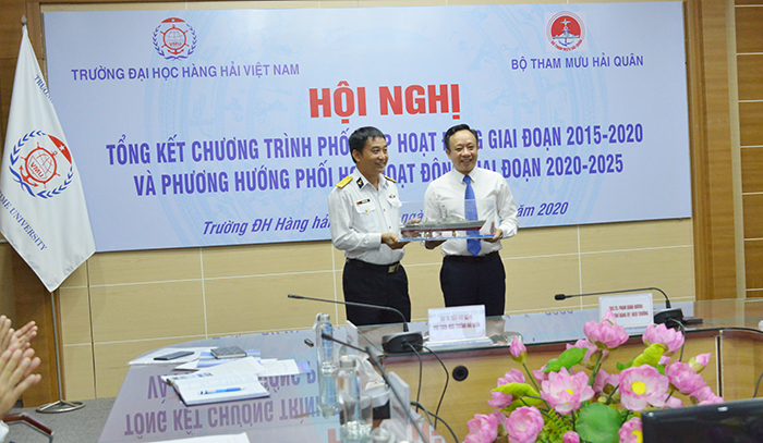 Sau khi nghe PGS.TS. Phạm Xuân Dương - Hiệu trưởng Trường Đại học Hàng hải Việt Nam giới thiệu đôi nét về chức năng, nhiệm vụ và lịch sử hình thành, phát triển của Trường Đại học Hàng hải Việt Nam và phóng sự về Bộ Tham mưu Hải Quân, Hội nghị đã được nghe đồng chí Đại tá Phạm Hữu Huy - Chủ nhiệm Chính trị, Bộ Tham mưu báo cáo kết quả công tác phối hợp hoạt động giữa Trường Đại học Hàng hải Việt Nam với Bộ Tham mưu Hải quân giai đoạn 2015- 2020, phương hướng phối hợp hoạt động giai đoạn 2020-2025.