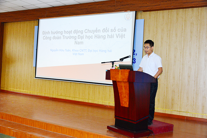 Tiến sĩ Nguyễn Hữu Tuân – Trưởng Khoa Công nghệ thông tin, Giám đốc Trung tâm CITAD chia sẻ về nội dung “Định hướng hoạt động chuyển đổi số của Công đoàn Trường Đại học Hàng hải Việt Nam”.
