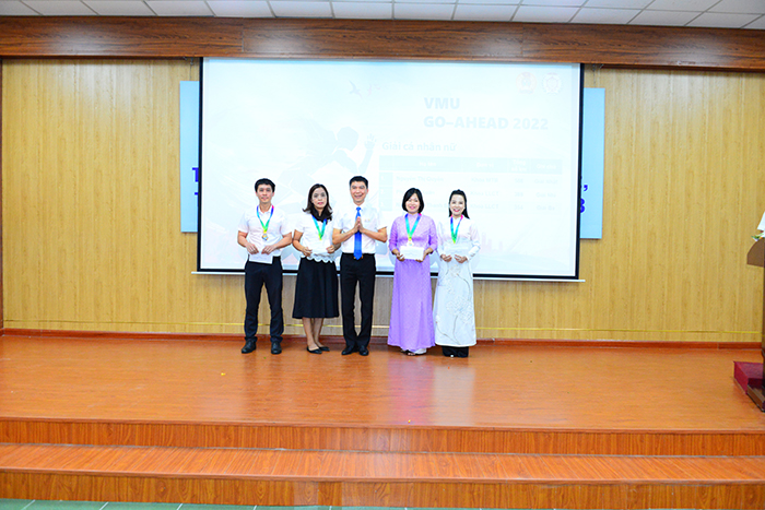 Đồng chí Nguyễn Công Vịnh - Chủ tịch Công đoàn Trường trao giải cho các Cá nhân đạt giải giải chạy VMU Go-Ahead 2022.