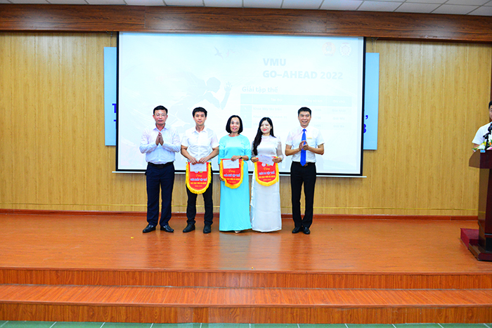 Đồng chí Nguyễn Công Vịnh - Chủ tịch Công đoàn Trường trao giải cho các Tập thể đạt giải giải chạy VMU Go-Ahead 2022.