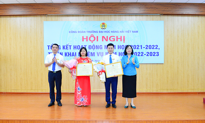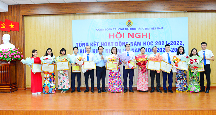 Để ghi nhận những thành quả này, tại Hội nghị, 33 Công đoàn bộ phận, Tổ Công đoàn trực thuộc hoàn thành xuất sắc nhiệm vụ, 12 Công đoàn trực thuộc hoàn thành tốt nhiệm vụ; 104 đoàn viên công đoàn hoàn thành xuất sắc nhiệm vụ, 445 đoàn viên công đoàn hoàn thành tốt nhiệm vụ; 28 tập thể và cá nhân đạt thành tích xuất sắc trong năm học 2021-2022 được Tổng LĐLĐ Việt Nam, Công đoàn Giáo dục Việt Nam, Công đoàn Giao thông vận tải, LĐLĐ thành phố Hải Phòng tặng Bằng khen biểu dương.