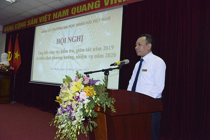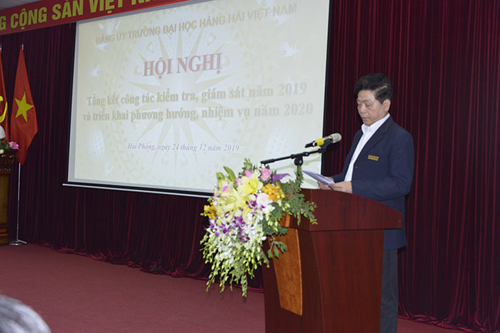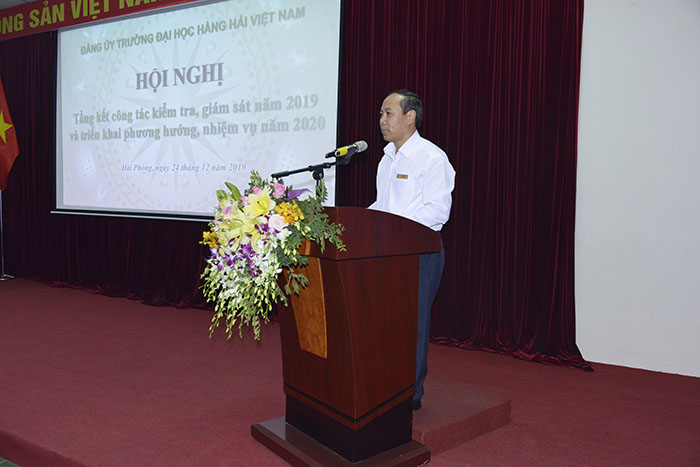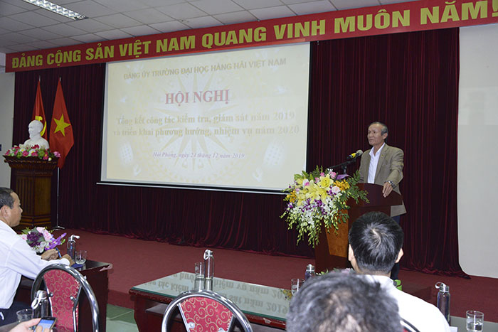 Căn cứ kế hoạch năm 2019, chiều 25/12/2019, Trường Đại học Hàng hải Việt Nam tổ chức: “Hội nghị tổng kết công tác kiểm tra, giám sát năm 2019, triển khai nhiệm vụ năm 2020 và quán triệt Nghị quyết quý I năm 2020” dưới sự chủ trì của PGS.TS Phạm Xuân Dương – Phó Bí thư phụ trách Đảng ủy, Hiệu trưởng Nhà trường.