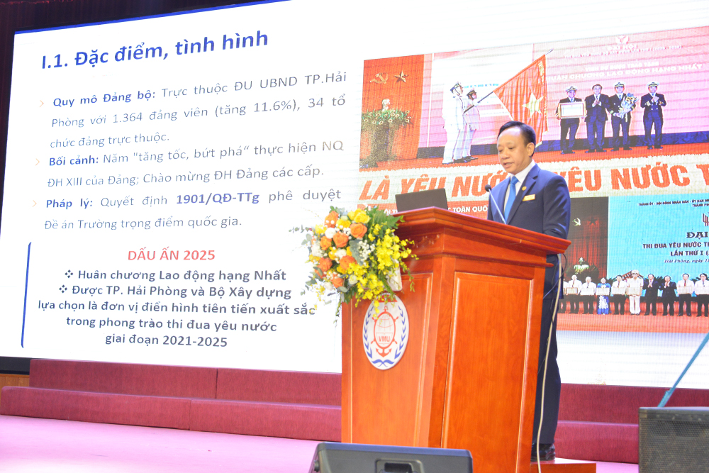 Tại Hội nghị, thay mặt Đảng bộ Trường Đại học Hàng hải Việt Nam, PGS.TS. Phạm Xuân Dương - Phó Bí thư Đảng ủy, Hiệu trưởng trình bày Báo cáo tổng kết công tác năm 2025 và phương hướng, nhiệm vụ công tác năm 2026.
