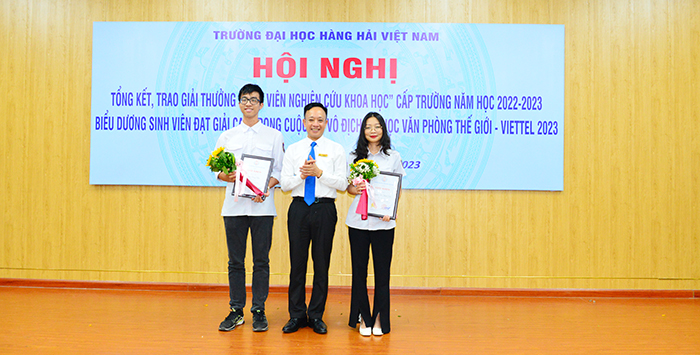Sáng 26/05/2023, tại Trường Đại học Hàng hải Việt Nam đã diễn ra Hội nghị tổng kết hoạt động Sinh viên nghiên cứu khoa học năm học 2022-2023 và Cuộc thi vô địch Tin học văn phòng Thế giới - Viettel 2023 dưới sự chủ trì của PGS.TS Phạm Xuân Dương - Hiệu trưởng Nhà trường. Tham dự Hội nghị có các Thầy trong BGH Nhà trường, lãnh đạo các Khoa/Viện chuyên môn, các phòng ban liên quan, Đoàn TN, Hội sinh viên và đặc biệt là các thầy cô giảng viên hướng dẫn cùng các em sinh viên có công trình tham gia xét tặng cấp Trường năm học 2022-2023.