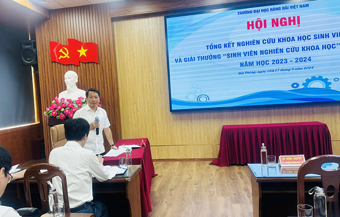 Sau khi tiến hành nghiệm thu cấp cơ sở, các Khoa/Viện chuyên môn đã tuyển chọn được 25 đề tài nghiên cứu khoa học xuất sắc nhất gửi xét tặng Giải thưởng NCKH Sinh viên cấp Trường. Trong 02 ngày 16 và 17/05/2024, Trường Đại học Hàng hải Việt Nam đã tiến hành tổ chức Hội nghị Tổng kết và xét tặng Giải thưởng “Nghiên cứu khoa học sinh viên” cấp Trường năm học 2023-2024 dưới sự chủ trì của PGS.TS Nguyễn Thanh Sơn - Phó Hiệu trưởng Nhà trường.