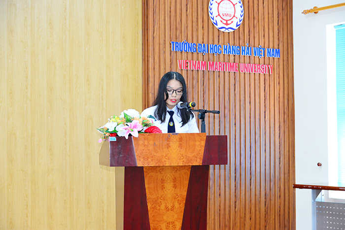 Bạn Đặng Hà Duyên là con của bố Đặng Công Xưởng – Trưởng Khoa Kinh tế, Trường Đại học Hàng hải Việt Nam đại diện cho các bạn đã trúng tuyển ĐH năm 2022 lên phát biểu, bày tỏ lòng biết ơn sự quan tâm của lãnh đạo Trường Đại học Hàng hải Việt Nam, sự dìu dắt của gia đình trong suốt 12 năm học qua, mong muốn quyết tâm phấn đấu đạt thêm nhiều thành công trong học tập và cuộc sống, tiếp tục rèn luyện, nỗ lực phấn đấu đạt kết quả học tập xuất sắc nhất xứng đáng là những hạt nhân tiêu biểu góp phần tạo nguồn nhân lực cho đất nước.