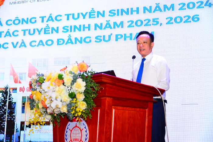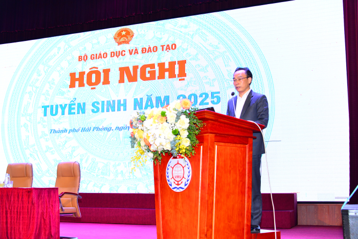 Sáng 29/03/2025, Bộ Giáo dục và Đào tạo (GD&ĐT) phối hợp với Trường Đại học Hàng hải Việt Nam tổ chức “Hội nghị tuyển sinh năm 2025” dưới sự chủ trì của PGS.TS. Hoàng Minh Sơn - Thứ trưởng Bộ GD&ĐT nhằm đánh giá tổng kết công tác tổ chức tuyển sinh năm 2024; Thống nhất triển khai công tác tuyển sinh năm 2025, đồng thời định hướng tổ chức tuyển sinh năm 2026 nhằm nâng cao chất lượng tuyển sinh, đảm bảo quyền tự chủ và trách nhiệm giải trình của các cơ sở đào tạo trong công tác tuyển sinh.