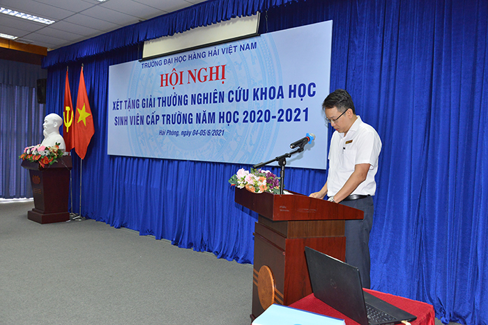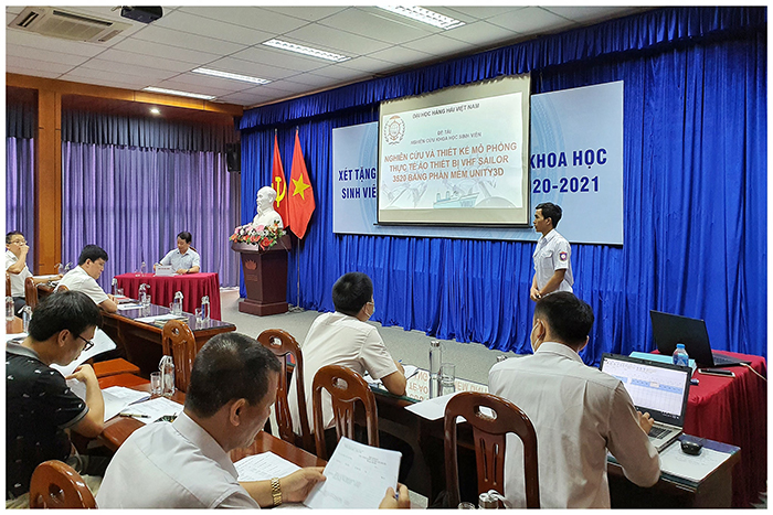 Tiếp tục phát huy truyền thống nghiên cứu khoa học, trong không khí sôi nổi chào mừng 65 năm kỷ niệm ngày thành lập Trường, năm học 2020-2021, Trường Đại học Hàng hải Việt Nam có tổng số 166 đề tài NCKH sinh viên cùng sự tham gia của hơn 300 sinh viên với các nội dung nghiên cứu rất đa dạng, tiếp cận từ lĩnh vực như mô phỏng, tự động hóa, công nghệ thông tin, cơ khí chế tạo, môi trường, logistics, kinh tế, luật, ngôn ngữ Anh,… Sau khi tiến hành nghiệm thu tại cấp cơ sở, các Khoa/Viện chuyên môn đã tuyển chọn 23 đề tài nghiên cứu khoa học xuất sắc nhấttừ các đơn vị gửi xét tặng Giải thưởng NCKH Sinh viên cấp Trường. Trong 02 ngày 04 và 05/06/2020, Trường Đại học Hàng hải Việt Nam đã tiến hành tổ chức Hội nghị đánh giá và xét tặng Giải thưởng “Nghiên cứu khoa học sinh viên” cấp Trường năm học 2020- 2021 dưới sự chủ trì của PGS.TS Nguyễn Thanh Sơn – Phó Hiệu trưởng Nhà trường.