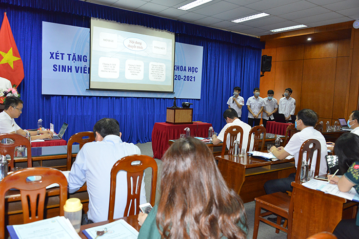 Trên cơ sở đó, Hội đồng xét tặng Giải thưởng đã cân nhắc, xem xét, thảo luận và cho điểm đánh giá dựa trên các tiêu chí trong Quy chế xét tặng giải thưởng Nghiên cứu khoa học sinh viên, đồng thời lựa chọn những công trình tiêu biểu có chất lượng, tính ứng dụng thực tiễn cao tham gia các công trình xét tặng Giải thưởng KH&CN dành cho sinh viên trong các cơ sở giáo dục đại học năm 2021của Bộ Giáo dục & Đào tạo. Hội đồng đã thống nhất và được Hiệu trưởng phê duyệt các kết quả Hội nghị như sau: