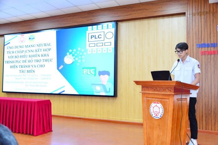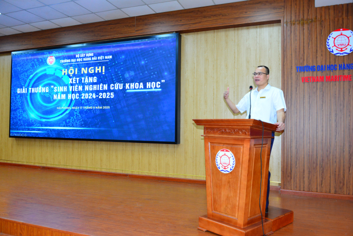Trong thời gian vừa qua, Hội đồng khoa học của các khoa, viện đã triển khai công tác nghiệm thu cấp cơ sở các đề tài nghiên cứu khoa học sinh viên. Trên cơ sở các kết quả đánh giá nghiêm túc từ các hội đồng chuyên môn, Nhà trường đã lựa chọn được 26 đề tài nghiên cứu khoa học xuất sắc nhất gửi xét tặng Giải thưởng “Sinh viên nghiên cứu khoa học” (NCKH) cấp Trường. Ngày 17/5/2025, Trường Đại học Hàng hải Việt Nam đã tổ chức Hội nghị xét tặng Giải thưởng “Sinh viên Nghiên cứu khoa học” năm học 2024-2025 dưới sự chủ trì của PGS.TS. Nguyễn Minh Đức - Phó Hiệu trưởng Nhà trường, Chủ tịch Hội đồng xét tặng Giải thưởng.