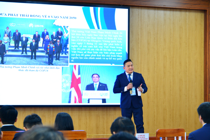 PGS.TS. Vũ Hoàng Nam - Trưởng phòng Quản lý Khoa học, đại diện Trường Đại học Ngoại thương, đơn vị đồng sáng lập CLSCM phát biểu tại Hội thảo