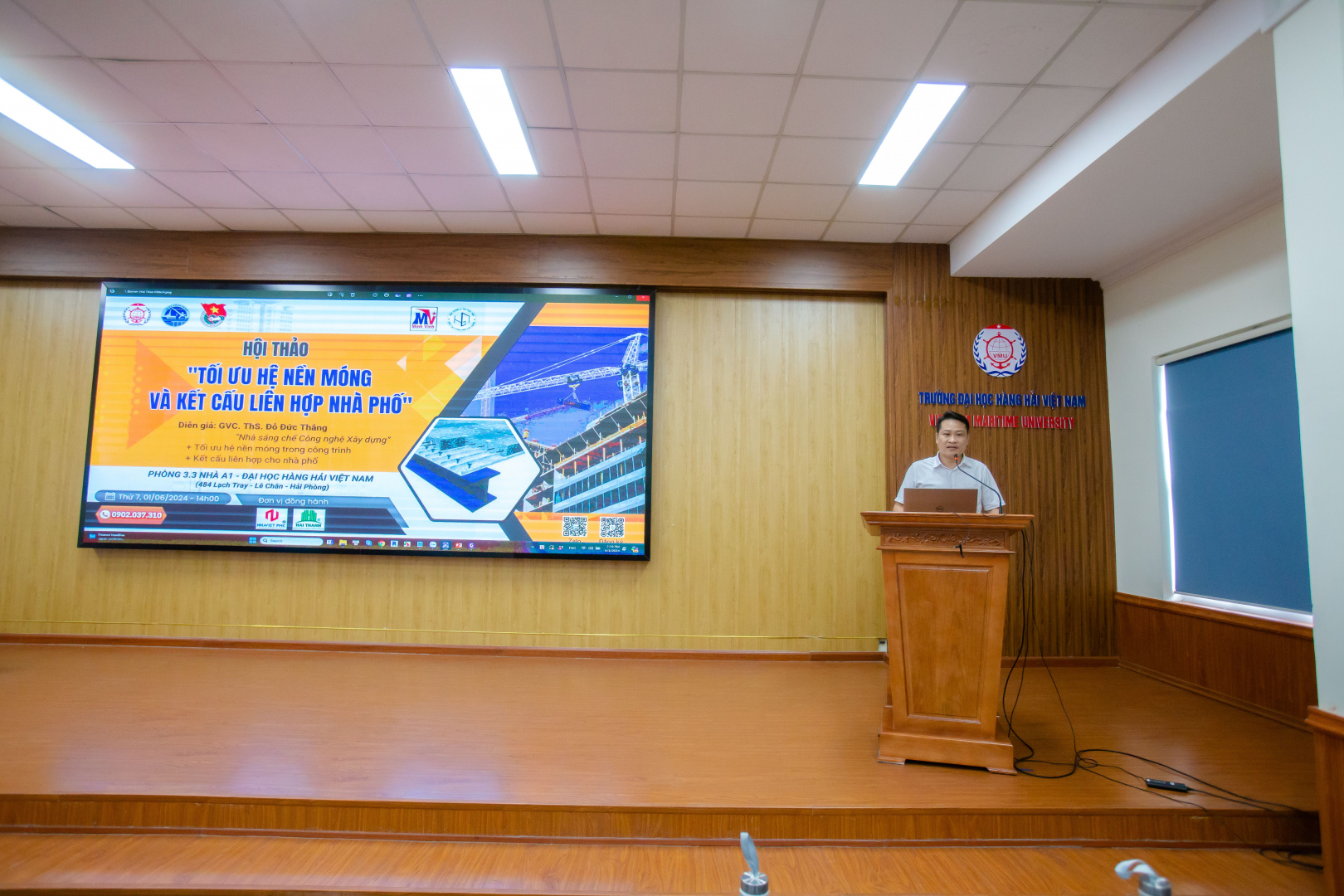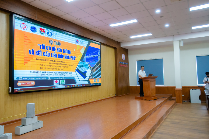 Chiều 1/6, Trường Đại học Hàng hải Việt Nam đã tổ chức Hội thảo khoa học với chủ đề "Tối ưu hệ Nền móng và Kết cấu liên hợp nhà phố" do Khoa Công trình phối hợp cùng Công ty TNHH thiết kế Xây dựng và Đầu tư Minh Vinh, Công ty cổ phần công trình Nhà Việt, Công ty cổ phần tư vấn và Xây dựng Hải Thành thực hiện. Đây là hoạt động nằm trong chuỗi các hoạt động Kết nối Doanh nghiệp - Nhà quản lý - Đơn vị đào tạo năm học 2023-2024 của Trường Đại học Hàng hải Việt Nam.