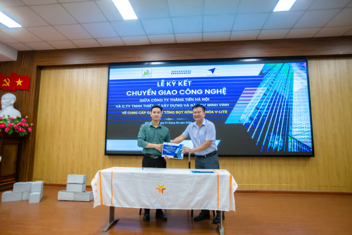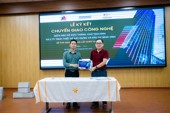 Cũng tại Hội thảo, ThS.Đỗ Đức Thắng và Ông Lương Sĩ Tuấn đã ký kết chuyển giao công nghệ của mình cho Công ty TNHH Thiết kế Xây dựng và Đầu tư Minh Vinh.