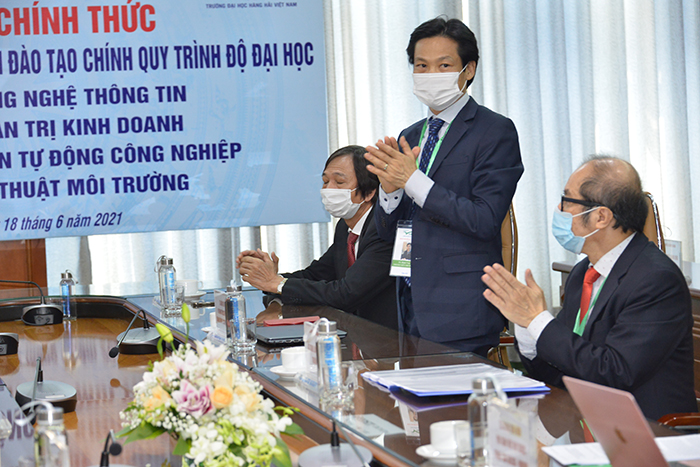 Mở đầu buổi lễ, PGS.TS. Phạm Xuân Dương – Phó Bí thư Đảng ủy, Hiệu trưởng Nhà trường, Chủ tịch Hội đồng Tự đánh giá đã phát biểu chào mừng Đoàn chuyên gia ĐGN, đồng thời bày tỏ hy vọng Đoàn Chuyên gia ĐGN sẽ có những nhận định, đánh giá xác thực nhất cùng những khuyến nghị giúp Nhà trường cải tiến chương trình và chất lượng đào tạo, xác định các giải pháp chiến lược nhằm nâng cao vị thế phát triển của Trường Đại học Hàng hải Việt Nam.