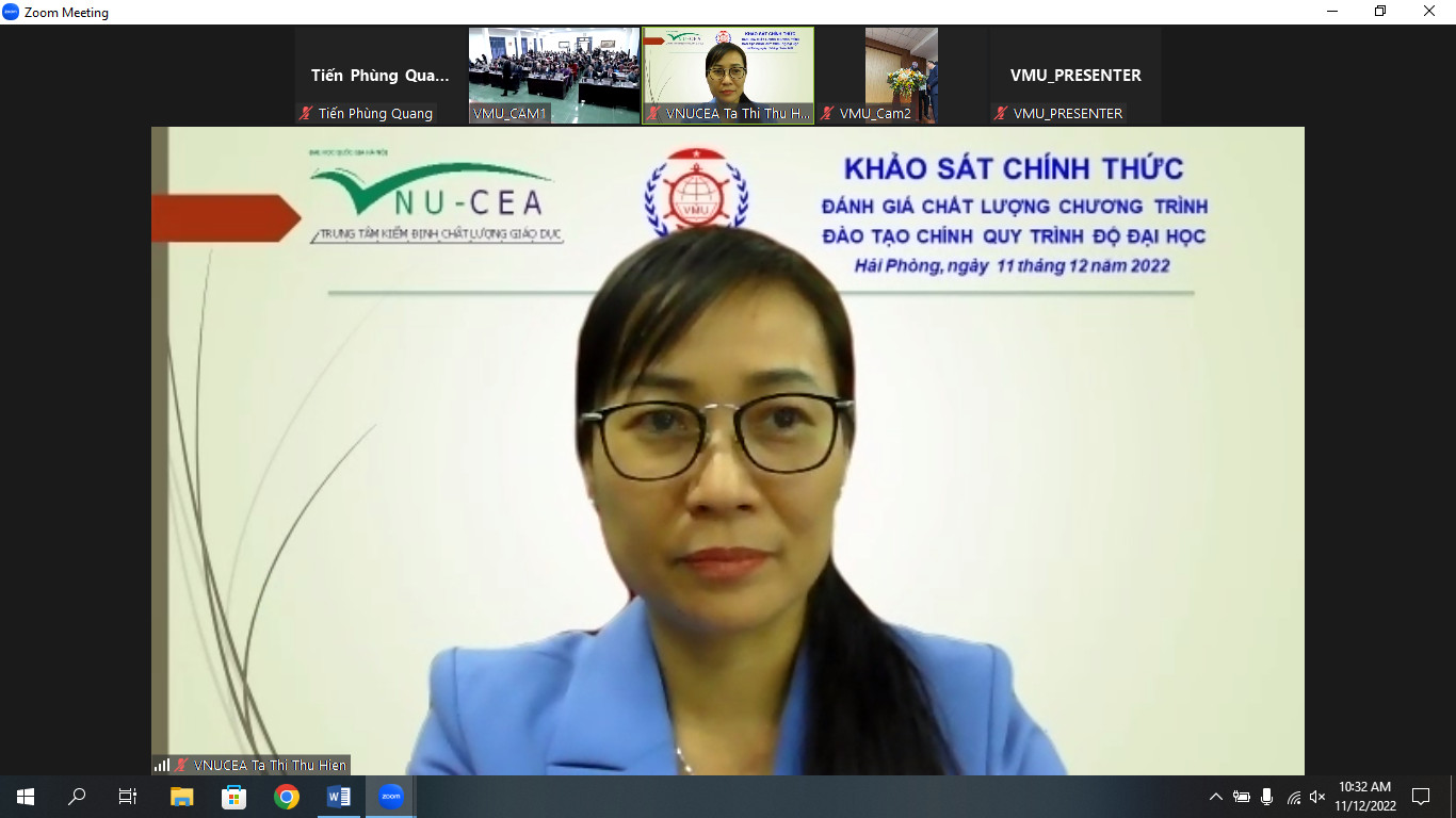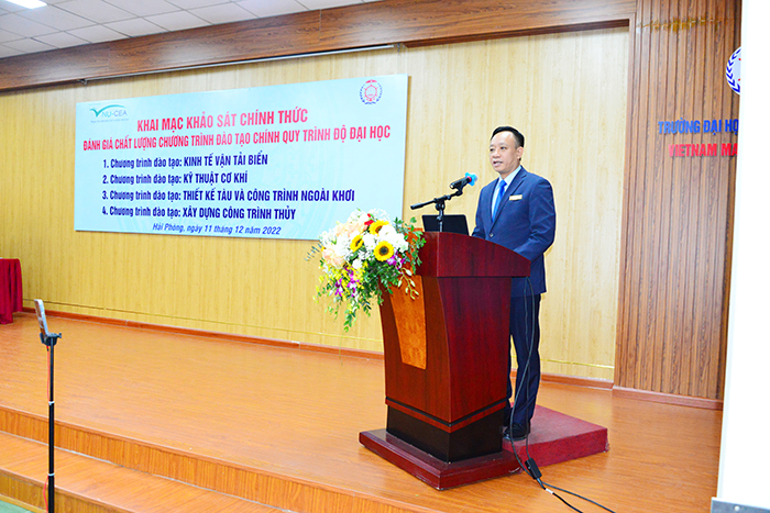 Sau buổi khảo sát sơ bộ, sáng ngày 11/12/2022, Trung tâm Kiểm định chất lượng giáo dục - Đại học Quốc gia Hà Nội (KĐCLGD-ĐHQGHN) cùng Trường Đại học Hàng hải Việt Nam khai mạc Chương trình khảo sát chính thức đánh giá 04 CTĐT theo bộ tiêu chuẩn chất lượng CTĐT ban hành tại Thông tư số 04/2016/TT-BGDĐT ngày 14/3/2016 của Bộ GD&ĐT.