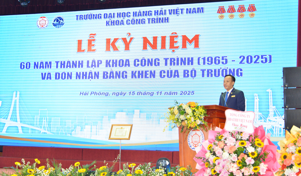 Phát biểu khai mạc tại Lễ kỷ niệm, PGS.TS. Trần Khánh Toàn - Trưởng khoa Công trình xúc động chia sẻ: “Sáu mươi năm là một hành trình của trí tuệ, tâm huyết và khát vọng cống hiến. Từ những ngày đầu đầy gian khó, với chỉ vài giảng viên và những phòng học còn đơn sơ, hôm nay Khoa Công trình đã vươn mình trở thành một đơn vị mạnh về đào tạo, nghiên cứu và ứng dụng công nghệ trong lĩnh vực kỹ thuật xây dựng - hàng hải. Những thành tựu có được là kết tinh của biết bao thế hệ thầy và trò, là minh chứng cho tinh thần đoàn kết, sáng tạo và trách nhiệm. Bước vào giai đoạn mới, Khoa sẽ tiếp tục đổi mới mạnh mẽ, phát triển toàn diện, hướng tới mục tiêu trở thành Viện Kỹ thuật Công trình - trung tâm đào tạo và nghiên cứu hàng đầu trong lĩnh vực kỹ thuật xây dựng và công trình biển.”