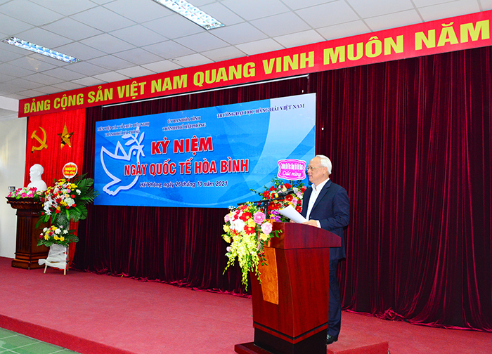 Phát biểu chào mừng Lễ Kỷ niệm, Ông Nguyễn Đức Thọ - Ủy viên Thành ủy, Phó Chủ tịch UBND Thành phố đánh giá cao những nỗ lực, cố gắng của những người làm công tác Hòa bình. Thông qua đây, đồng chí đề nghị mỗi tổ chức, cá nhân, đặc biệt các bạn học sinh, sinh viên tích cực tham gia, hưởng ứng các phong trào Hòa bình, có những việc làm thiết thực đóng góp xây dựng môi trường sống của chúng ta an toàn-bền vững.