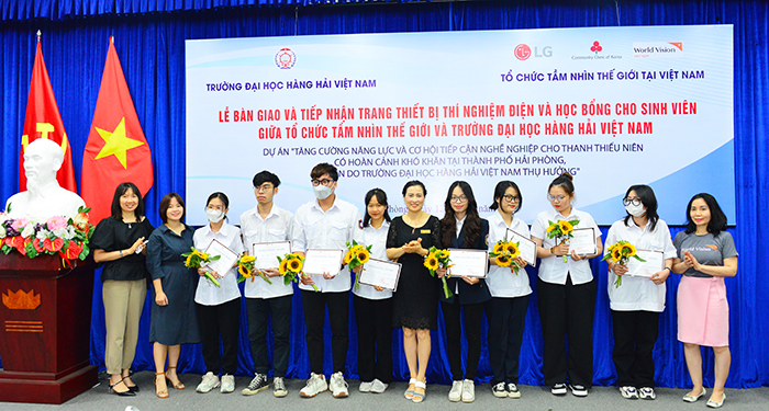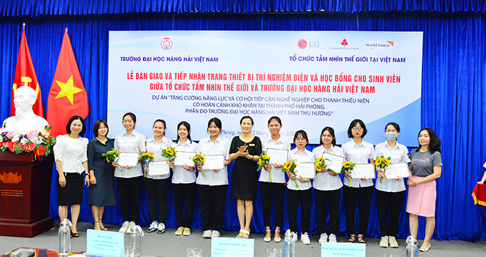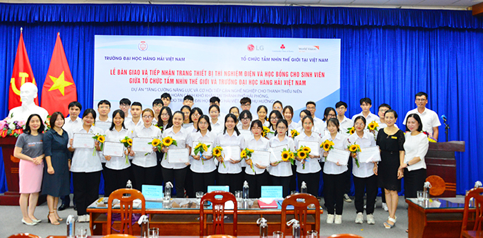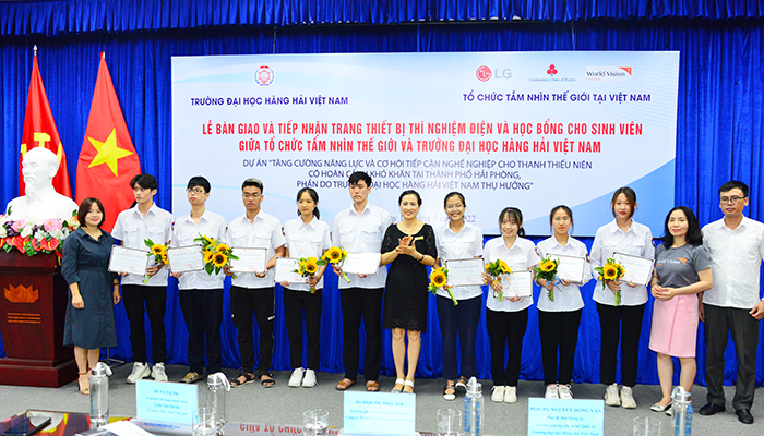 Sáng ngày 12/5, tại Trường Đại học Hàng hải Việt Nam đã diễn ra Lễ bàn giao và tiếp nhận trang thiết bị thí nghiệm điện và học bổng cho sinh viên giữa Tổ chức Tầm nhìn Thế giới và Trường Đại học Hàng hải Việt Nam. Tới dự có PGS.TS Nguyễn Hồng Vân – Phó Bí thư Đảng ủy, Trưởng phòng Quan hệ quốc tế; Bà Vũ Thị Đủ - Trưởng Chương trình vùng Quận Ngô Quyền, Tổ chức Tầm nhìn Thế giới (World Vision International) tại Việt Nam; Bà Đinh Thị Thúy Anh – Trưởng phòng Văn hóa Hành chính, Công ty TNHH LG Electonics Việt Nam; cùng sự có mặt của các đồng chí lãnh đạo đại diện các Khoa/Viện trong Trường và 40 em sinh viên nhận học bổng.