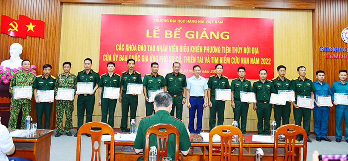 Sau gần 2 tháng tập trung, 10h00 ngày 23/09/2022, Cục cứu hộ cứu nạn phối hợp với Trường Đại học Hàng hải Việt Nam tổ chức Lễ bế giảng 03 khóa đào tạo (16,17,18) các khóa đào tạo nhân viên điều khiển phương tiện thủy nội địa phục vụ công tác tìm kiếm cứu nạn năm 2022. Đây là những khóa đào tạo nhằm nâng cao hoạt động, tinh thần trách nhiệm của các tổ chức, cá nhân trong công tác tìm kiếm cứu nạn đường thủy nội địa, cũng như đào tạo bồi dưỡng hoàn thiện kỹ năng điều khiển phương tiện thủy nội địa của người trực tiếp tham gia vào hoạt động tìm kiếm, cứu nạn.