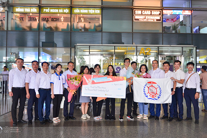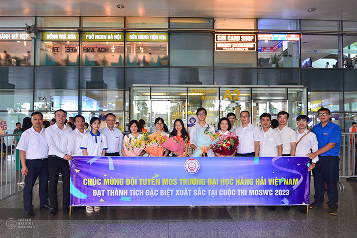 Sáng 04/08, đội tuyển Việt Nam trong đó có hai sinh viên Trường Đại học Hàng hải Việt Nam (SV Nguyễn Thị Thanh Trúc - Lớp LQC61ĐH - giải Nhất quốc gia nội dung thi Excel 2016 và SV Phạm Trung Nam - Lớp KTN60ĐH - giải Nhất quốc gia nội dung thi Excel 2019) tham dự Cuộc thi Vô địch tin học văn phòng thế giới 2023 hạ cánh tại Sân bay Nội Bài, Hà Nội. Đội truyển MOS Trường Đại học Hàng hải Việt Nam do PGS.TS Phạm Xuân Dương - Hiệu trưởng làm Trưởng đoàn. Tham gia lễ đón đội tuyển Việt Nam trở về có Lãnh đạo của IIG Việt Nam và Trường Đại học Hàng hải Việt Nam cùng đại diện các đồng chí lãnh đạo Phòng/Ban, Đoàn TNCS Hồ Chí Minh, Hội Sinh viên Trường.