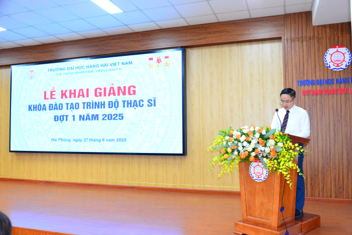 Chiều 27/6/2025, Trường Đại học Hàng hải Việt Nam tổ chức Lễ Khai giảng khóa đào tạo trình độ Thạc sĩ đợt 1 năm 2025. Tham dự buổi lễ có PGS.TS. Phạm Xuân Dương - Hiệu trưởng Nhà trường; các thầy đại diện Ban Giám hiệu, các đoàn thể, phòng, ban của Trường, lãnh đạo các Khoa/Viện chuyên môn tham gia trực tiếp vào công tác đào tạo, giảng dạy, các nhà khoa học, cùng các tân học viên cao học trúng tuyển đợt 1 năm 2025.