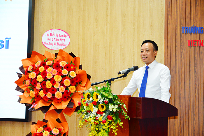 PGS.TS Phạm Xuân Dương - Hiệu trưởng Nhà trường phát biểu chúc mừng các học viên trúng tuyển đợt 2 năm 2023