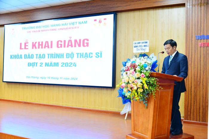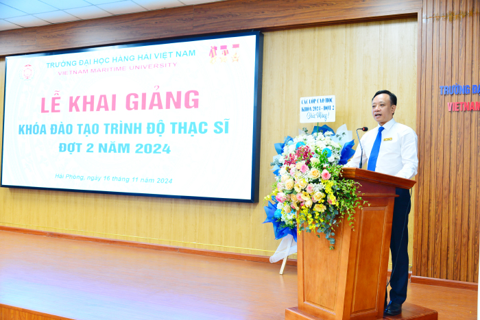 Chiều 16/11/2024, Trường Đại học Hàng hải Việt Nam tổ chức Lễ Khai giảng khóa đào tạo trình độ Thạc sĩ đợt 2 năm 2024. Tham dự buổi lễ có PGS.TS. Nguyễn Khắc Khiêm - Bí thư Đảng ủy, Chủ tịch Hội đồng trường; PGS.TS. Phạm Xuân Dương - Hiệu trưởng Nhà trường; đại diện các đoàn thể, phòng, ban của Trường, lãnh đạo các Khoa/Viện chuyên môn tham gia trực tiếp vào công tác đào tạo, giảng dạy, các nhà khoa học, cùng các tân học viên cao học trúng tuyển đợt 2 năm 2024.