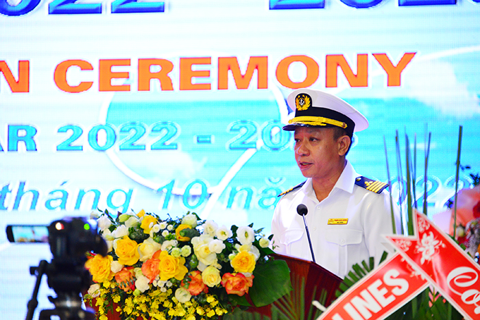 Đối với tân sinh viên, các em hãy tự hào là những tân sinh viên Khoá 63 của Mái trường Đại dương với bề dày truyền thống hơn 66 năm xây dựng, trưởng thành, ngôi trường được phong tặng Danh hiệu Anh hùng Lực lượng Vũ trang nhân dân, Anh hùng lao động thời kỳ đổi mới, Huân chương Hồ Chí Minh. Các em là những thanh niên ưu tú đầy khát vọng chinh phục và làm chủ đại dương, làm giàu từ biển. Các em đã được tuyển chọn đào tạo để trở thành các chuyên gia, các nhà quản lý, các nhà khoa học phục vụ sự nghiệp phát triển nền kinh tế hướng ra biển của đất nước, góp phần bảo vệ chủ quyền biển đảo thiêng liêng của Tổ Quốc. Các em là niềm tự hào của mỗi gia đình, mỗi dòng họ. Chính vì vậy, các em hãy sống, học tập và rèn luyện theo gương các bậc cha anh, luôn có hoài bão, có lý tưởng sống và ý chí vượt khó để vươn lên; các em phải luôn có nghị lực và bản lĩnh để tránh xa những cám dỗ đời thường. Các em hãy luôn nhớ rằng: học tập, rèn luyện hôm nay cho lập nghiệp mai sau, trước hết cho bản thân, cho gia đình, sau đó là cho Tổ Quốc Việt Nam thân yêu.