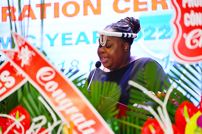 Bà Vuyiswa Tulelo Đại sứ đặc mệnh toàn quyền Nam Phi tại Việt Nam đại diện các đối tác của Nhà trường phát biểu tại Lễ Khai giảng