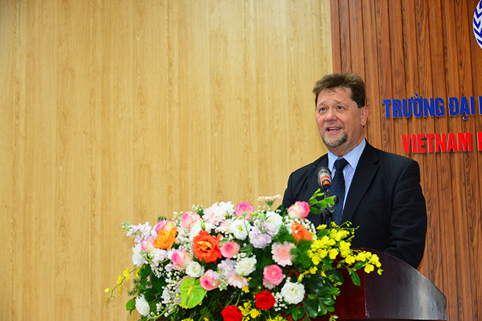 Về phía Đại học Tasmania: Giáo sư Stephen Cahoon - Chuyên ngành Logistics; Giáo sư Rob Palmer - Trưởng dự án; Cô Thủy Phan - Đại diện Trường Đại học Tasmania tại Việt Nam.