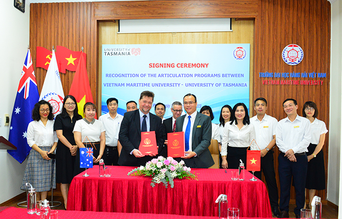 Sáng 20/09/2023, Lễ ký biên bản hợp tác công nhận 02 chương trình đào tạo hệ cử nhân của Trường Đại học Hàng Hải Việt Nam cho sinh viên tham gia chương trình chuyển tiếp tại Đại học Tasmania - Úc đã diễn ra tại Trường Đại học Hàng hải Việt Nam. Đây là cơ hội để học sinh, sinh viên Trường Đại học Hàng Hải Việt Nam nói riêng và sinh viên Việt Nam được tiếp cận với chương trình đào tạo đạt chuẩn quốc tế.