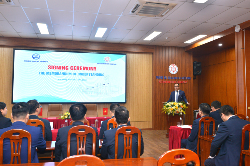Ngày 17/11/2025, Trường Đại học Hàng hải Việt Nam (VMU) đã có buổi đón tiếp và làm việc với Đoàn công tác của Đại học Hàng hải Thượng Hải (SMU) do GS. Cao Rongrui - Phó Hiệu trưởng làm Trưởng Đoàn. Về phía Trường Đại học Hàng hải Việt Nam có PGS.TS. Nguyễn Minh Đức - Phó Hiệu trưởng cùng đại diện lãnh đạo các đơn vị liên quan.