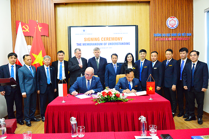 Sáng 24/10, Trường Đại học Hàng hải Việt Nam đã có buổi làm việc và ký kết thỏa thuận hợp tác với Trường Đại học Công nghệ Gdańsk - Ba Lan nhằm mở rộng, thắt chặt mối quan hệ hợp tác lâu dài giữa hai Trường.