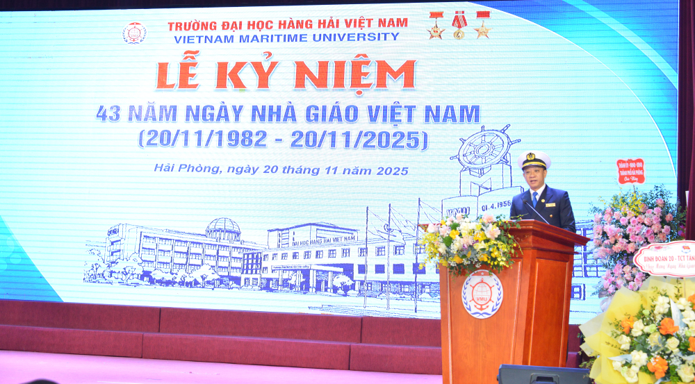 Lễ Kỷ niệm 43 năm ngày Nhà giáo Việt Nam năm nay được tổ chức trong không khí toàn Trường đang quyết tâm triển khai nhiệm vụ năm học, triển khai Nghị quyết Đại hội Đảng bộ trường Khoá 28, đồng thời triển khai thực hiện Đề án “Xây dựng Trường Đại học Hàng hải Việt Nam là trường trọng điểm quốc gia về đào tạo, nghiên cứu phục vụ phát triển bền vững kinh tế biển giai đoạn đến 2030, tầm nhìn đến 2045” đã được Thủ tướng Chính phủ phê duyệt tại Quyết định số 1901/QĐ-TTg ngày 05/9/2025.