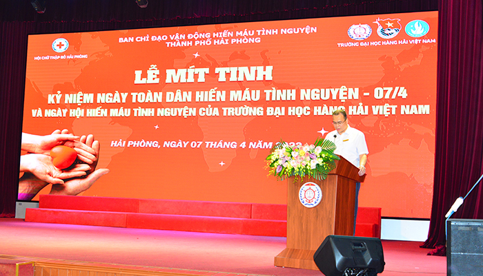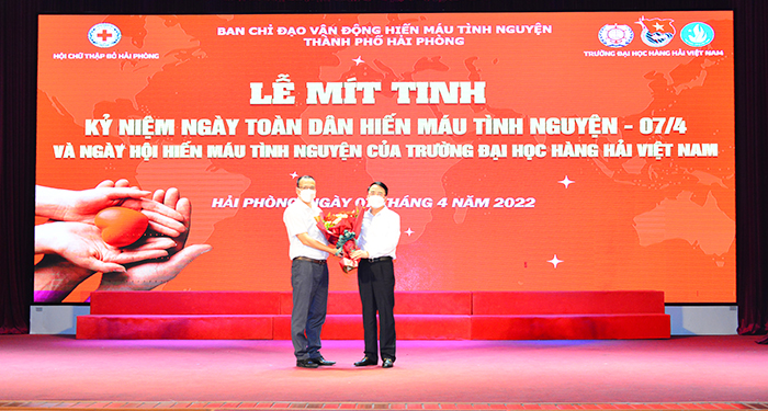 08h00 ngày 07/04/2022, Trường Đại học Hàng hải Việt Nam phối hợp với Ban chỉ đạo vận động hiến máu tình nguyện thành phố Hải Phòng và Hội chữ thập đỏ thành phố tổ chức “Lễ Mít tinh hưởng ứng Ngày toàn dân tham gia hiến máu tình nguyện - 7/4 và Ngày hội hiến máu tình nguyện của Trường Đại học Hàng hải Việt Nam”. Đây là hoạt động tiêu biểu góp phần đẩy mạnh phong trào hiến máu tình nguyện vì sức khỏe cộng đồng trong cán bộ, giảng viên, viên chức, người lao động và sinh viên Nhà trường, thể hiện trách nhiệm với cộng đồng và tinh thần tương thân tương ái của dân tộc đồng thời là hoạt động góp phần tuyên truyền mục đích, ý nghĩa cao đẹp của hiến máu tình nguyện (HMTN) đến với đông đảo nhân dân thành phố Hải Phòng nói chung và Trường Đại học Hàng hải Việt Nam nói riêng.