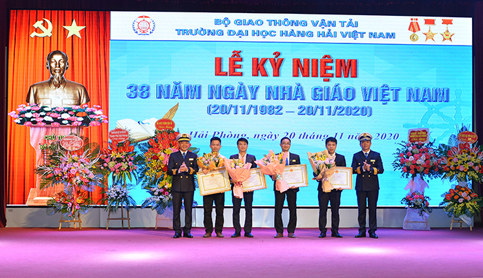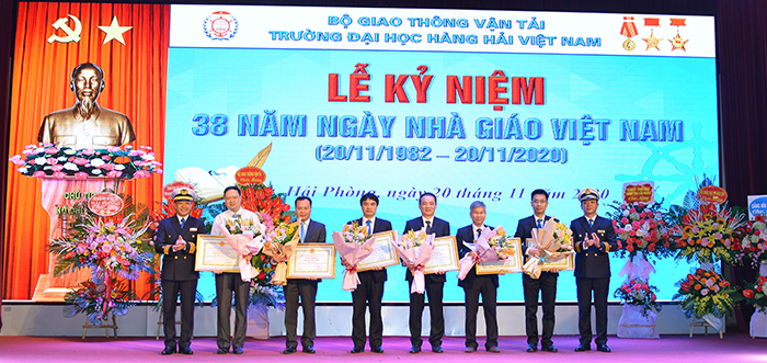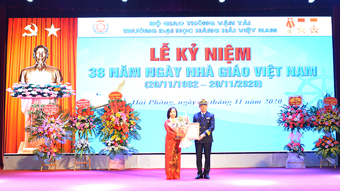Sáng 08h ngày 20/11/2020, Trường Đại học Hàng hải Việt Nam đã tổ chức: “Lễ kỷ niệm 38 năm Ngày Nhà giáo Việt Nam 20/11”. Tới dự và chung vui với thầy và trò Trường Đại học Hàng hải Việt Nam có đồng chí Lê Khắc Nam - Phó Chủ tịch UBND TP Hải Phòng, NGƯT.PGS.TS Lê Quốc Tiến – Giám đốc Sở Giáo dục & Đào tạo Thành phố Hải Phòng các đồng chí đại diện lãnh đạo các Bộ, Sở ban ngành Thành phố Hải Phòng.