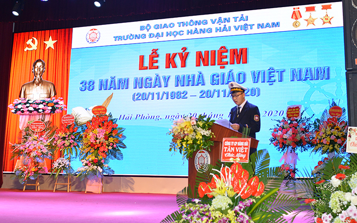 Lễ kỷ niệm 38 năm ngày Nhà giáo Việt Nam được tổ chức trong không khí toàn Trường đang quyết tâm triển khai nhiệm vụ năm học, năm đầu tiên triển khai Nghị quyết Đại hội Đảng bộ Trường Khoá XXVII, tiếp tục thực hiện chiến lược phát triển Nhà trường trở thành đại học trọng điểm quốc gia, đạt đẳng cấp quốc tế với giá trị cốt lõi: "Trí tuệ - Sáng tạo - Trách nhiệm - Nhân văn”, khẳng định vị trí quan trọng trong việc triển khai Nghị quyết 36/NQ-TW của Hội nghị Trung ương 8 Khoá 12 về “Phát triển bền vững kinh tế biển Việt Nam đến năm 2030 tầm nhìn 2045”, và Nghị quyết 45/NQ-TW của Bộ Chính trị về “Phát triển Thành phố Hải Phòng đến năm 2030 tầm nhìn 2045”.