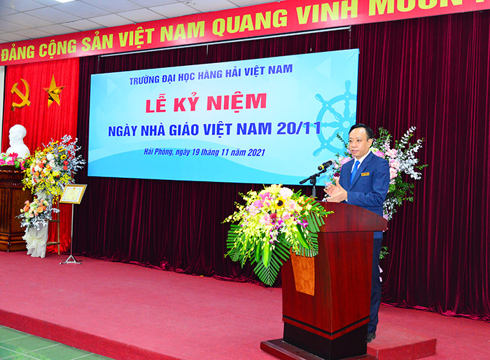 08h00 ngày 19/11/2021, Trường Đại học Hàng hải Việt Nam tổ chức Lễ mít tinh kỷ niệm 39 năm Ngày Nhà giáo Việt Nam (20/11/1982 – 20/11/2021). Dự lễ mít tinh có PGS.TS Nguyễn Khắc Khiêm – Bí thư Đảng ủy, Chủ tịch Hội đồng Trường; PGS.TS Phạm Xuân Dương – Phó Bí thư Đảng ủy, Hiệu trưởng Nhà trường – chủ trì Lễ kỷ niệm cùng các đồng chí trong Ban Giám hiệu, Công đoàn, Đoàn Thanh niên - Hội sinh viên, Thủ trưởng các đơn vị trong toàn Trường.