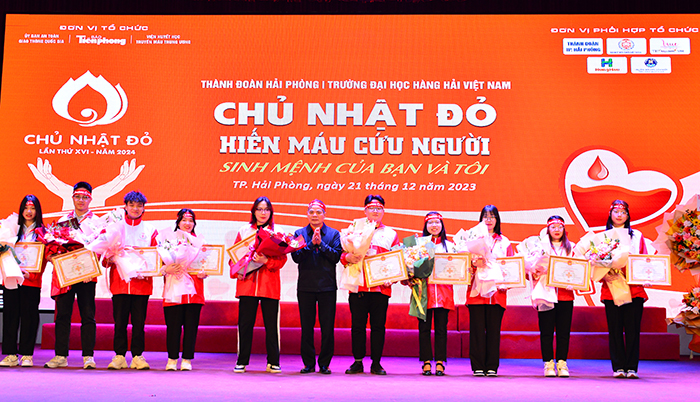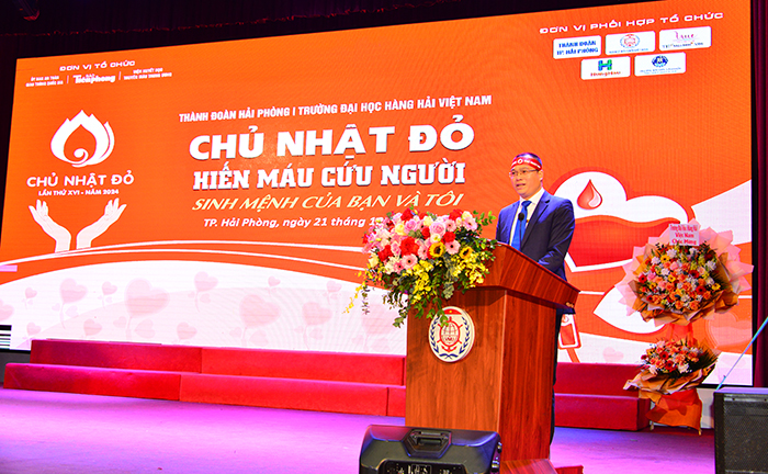 Sáng 21/12, Trường Đại học Hàng hải Việt Nam phối hợp với Báo Tiền Phong, Hội Chữ thập đỏ Hải Phòng, Thành Đoàn - Hội Sinh viên Thành phố Hải Phòng, Trung tâm Huyết học & Truyền máu - Bệnh viện Hữu nghị Việt Tiệp, tổ chức Lễ phát động Chương trình “Chủ nhật Đỏ lần thứ 16 năm 2024” với thông điệp “Hiến máu cứu người - Sinh mệnh của bạn và tôi”.