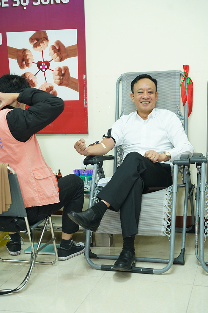 PGS.TS. Phạm Xuân Dương - Hiệu trưởng Nhà trường đánh dấu lần hiến máu thứ 58 của mình