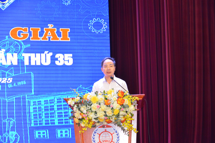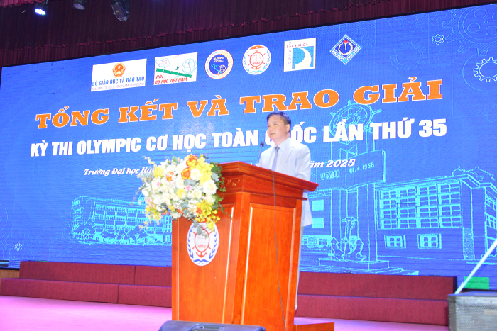 Đại diện đơn vị đăng cai tổ chức, PGS.TS. Phạm Xuân Dương - Hiệu trưởng Trường Đại học Hàng hải Việt Nam nhấn mạnh: Lễ Tổng kết và trao giải Kỳ thi Olympic Cơ học toàn quốc lần thứ 35 năm 2025 - khu vực Miền Bắc diễn ra trong không khí cả nước tưng bừng chào đón Kỷ niệm 50 năm Ngày Giải phóng Miền Nam, thống nhất đất nước, non sông liền một dải, trong những ngày tháng Năm lịch sử, thành phố Hải Phòng đã chuẩn bị mọi mặt cho Lễ kỷ niệm 70 năm Ngày Giải phóng Hải Phòng (13/5/1955 - 13/5/2025) và Lễ hội Hoa Phượng đỏ - Hải Phòng 2025 với nhiều hoạt động văn hóa, xã hội và kinh tế quy mô lớn. Trên những con đường, ngõ phố, sự rộn ràng của nhạc hành khúc cùng những bước chân quân hành của khối diễu binh, diễu hành đang hợp luyện, Trường Đại học Hàng hải Việt Nam cũng rợp sắc cờ hoa chào mừng, khối diễu binh mang trên mình bộ lễ phục của sinh viên Trường Đại học Hàng hải Việt Nam cũng hoà cùng các khối diễu binh, diễu hành của Thành phố.