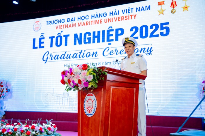 Phát biểu tại Lễ Tốt nghiệp năm 2025, PGS.TS. Phạm Xuân Dương - Hiệu trưởng Trường Đại học Hàng hải Việt Nam đã gửi gắm những lời tâm huyết tới các tân kỹ sư, tân cử nhân. Thầy chia sẻ: “Ngày hôm nay, các em chính thức khép lại quãng đời sinh viên với biết bao kỷ niệm. Tuy nhiên, tốt nghiệp không phải là đích đến cuối cùng, mà là khởi đầu cho một hành trình mới - hành trình của sự nghiệp, cống hiến và trưởng thành. Thầy mong rằng các em sẽ luôn giữ vững tinh thần cầu tiến, lòng nhân hậu và khát vọng phụng sự cộng đồng, đất nước và cũng là tương lai, sự nghiệp của chính các em...”